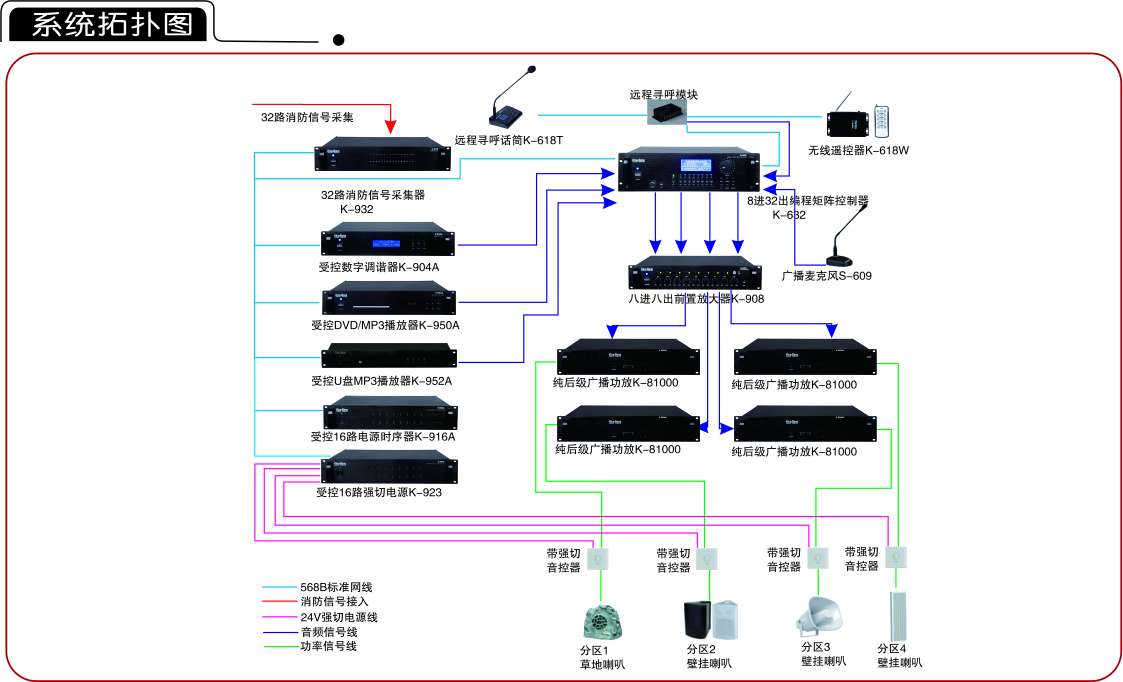 7、消防聯(lián)動:系統(tǒng)可與消防報警系統(tǒng)無縫連接,實現(xiàn)廣播消防報警。