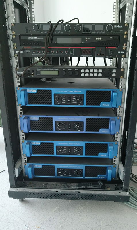 放大設(shè)備——指對(duì)經(jīng)過(guò)調(diào)控設(shè)備混音輸出、信號(hào)處理后的信號(hào)進(jìn)行后級(jí)功率放大設(shè)備,這里指專業(yè)功率放大器;重放設(shè)備——指將經(jīng)過(guò)后級(jí)功率放大器放大的音頻信號(hào)進(jìn)行電—聲轉(zhuǎn)換并釋放表現(xiàn)出來(lái)人耳可懂的聲頻信號(hào)的設(shè)備,這里指揚(yáng)聲器;