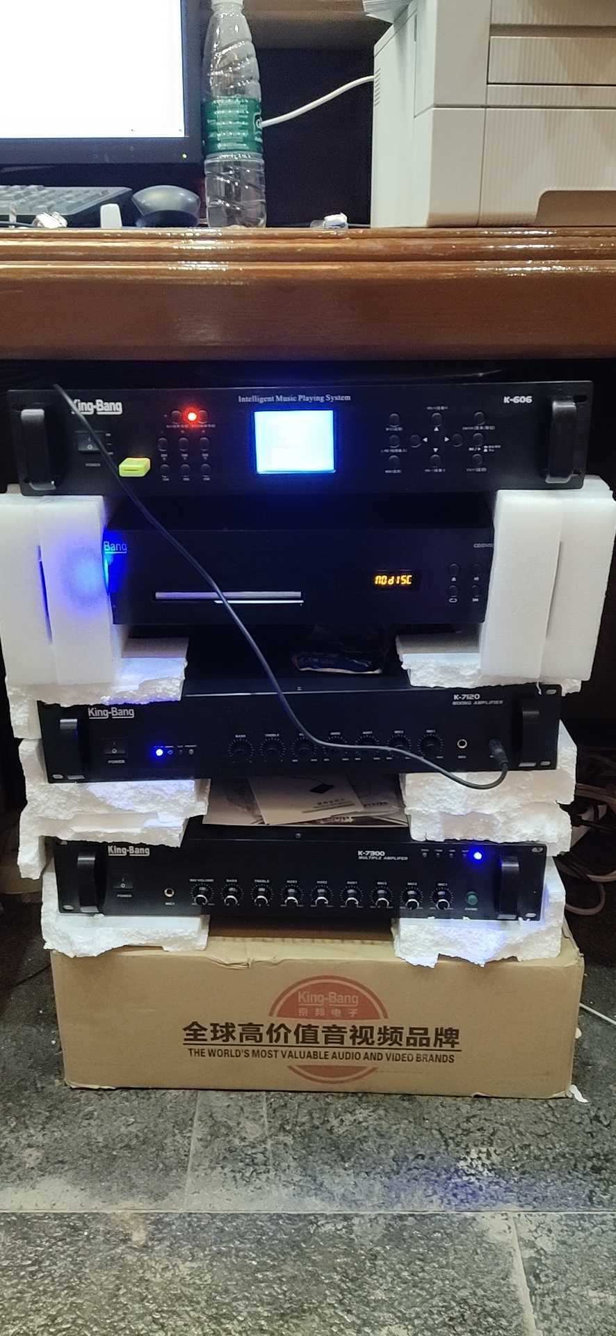 為了最好的效果和最佳的安裝方式,京邦電子(KING-BANG)選擇了天花揚聲器,配置合并式廣播功放,可以完美的將聲音放大,聲音覆蓋了服務中心。為了在使用過程中方便調整各信號音量大小,系統還配置了一塊控制面板,以便直觀的實時調整個通道音量。
